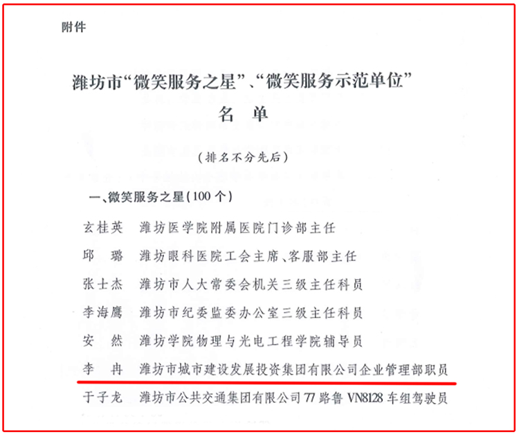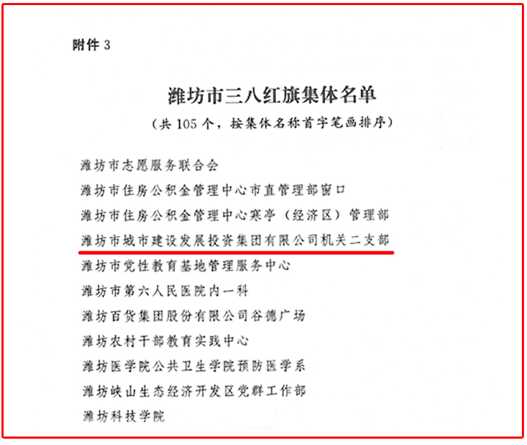 在“三八”妇女节来临之际,市城投集团再次获得集体和个人荣誉称号:市城投集团机关第二党支部被市妇女联合会评为“潍坊市三八红旗集体”;企业管理部李冉同志被市委宣传部、市文明办等六部门联合评选为潍坊市“微笑服务之星”,是市属国有企业唯一获此表彰的女职工。